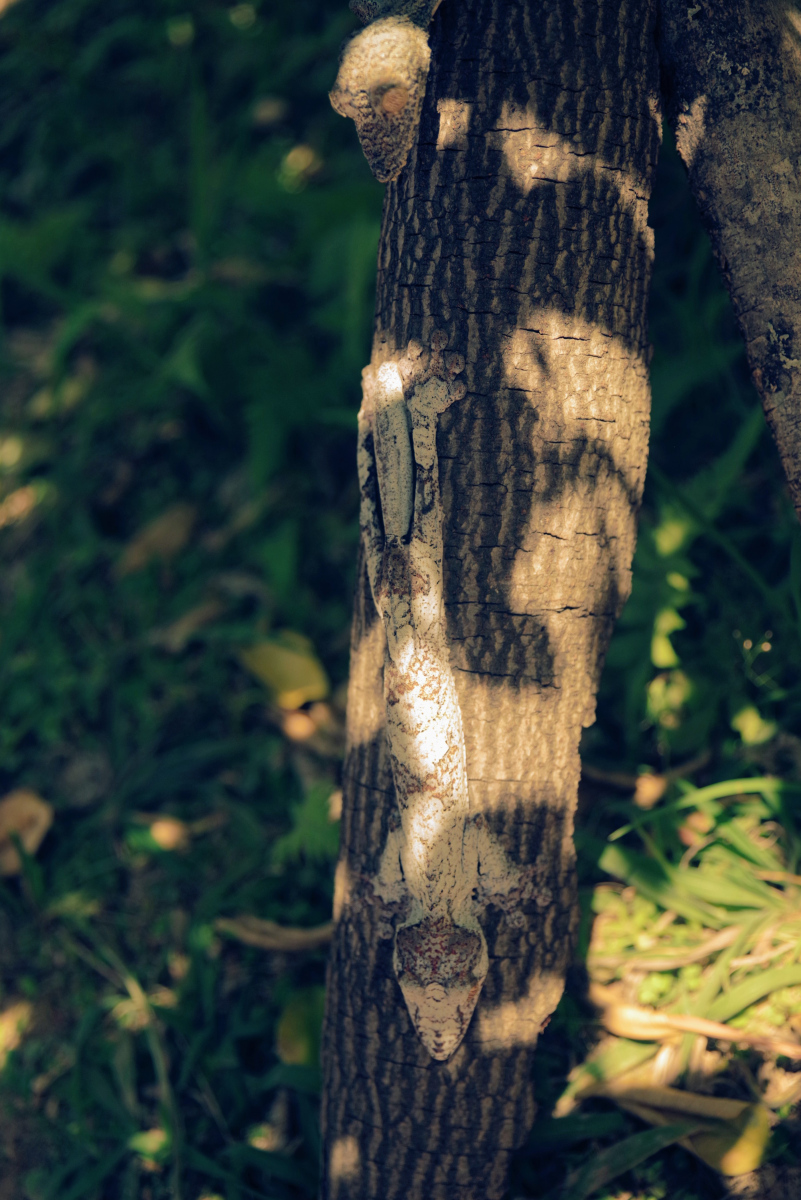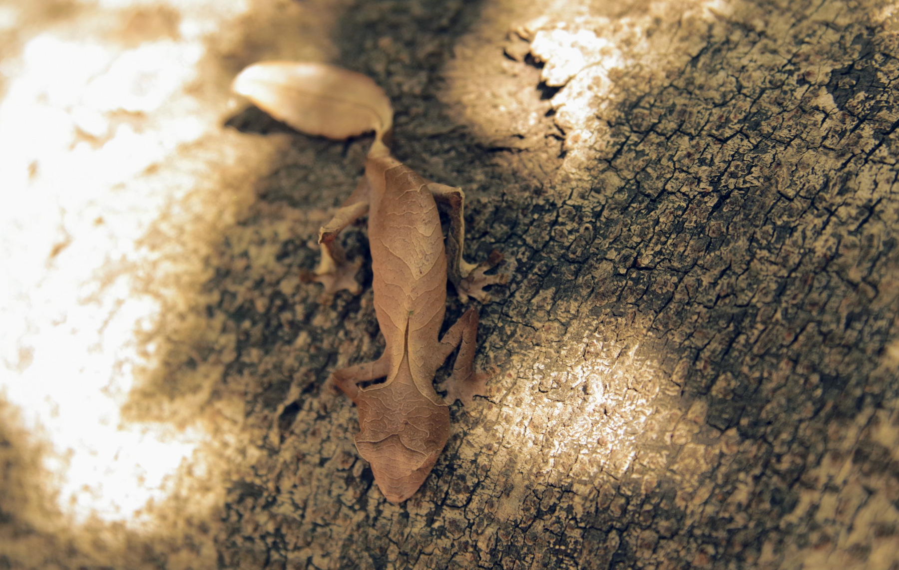 Kaum zu sehen sind die Blattschwanzgeckos, nachtaktive Tiere, die sich unter Tags auf ihre Tarnung verlassen – gut gelungen „longest leave tailed gecko“!