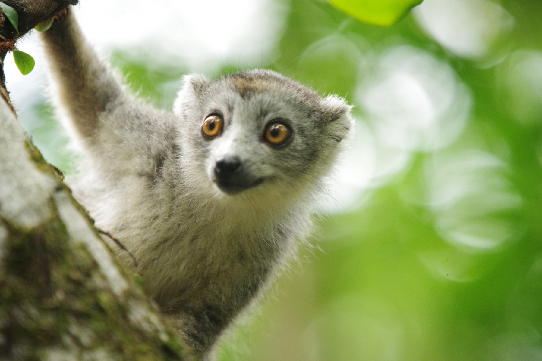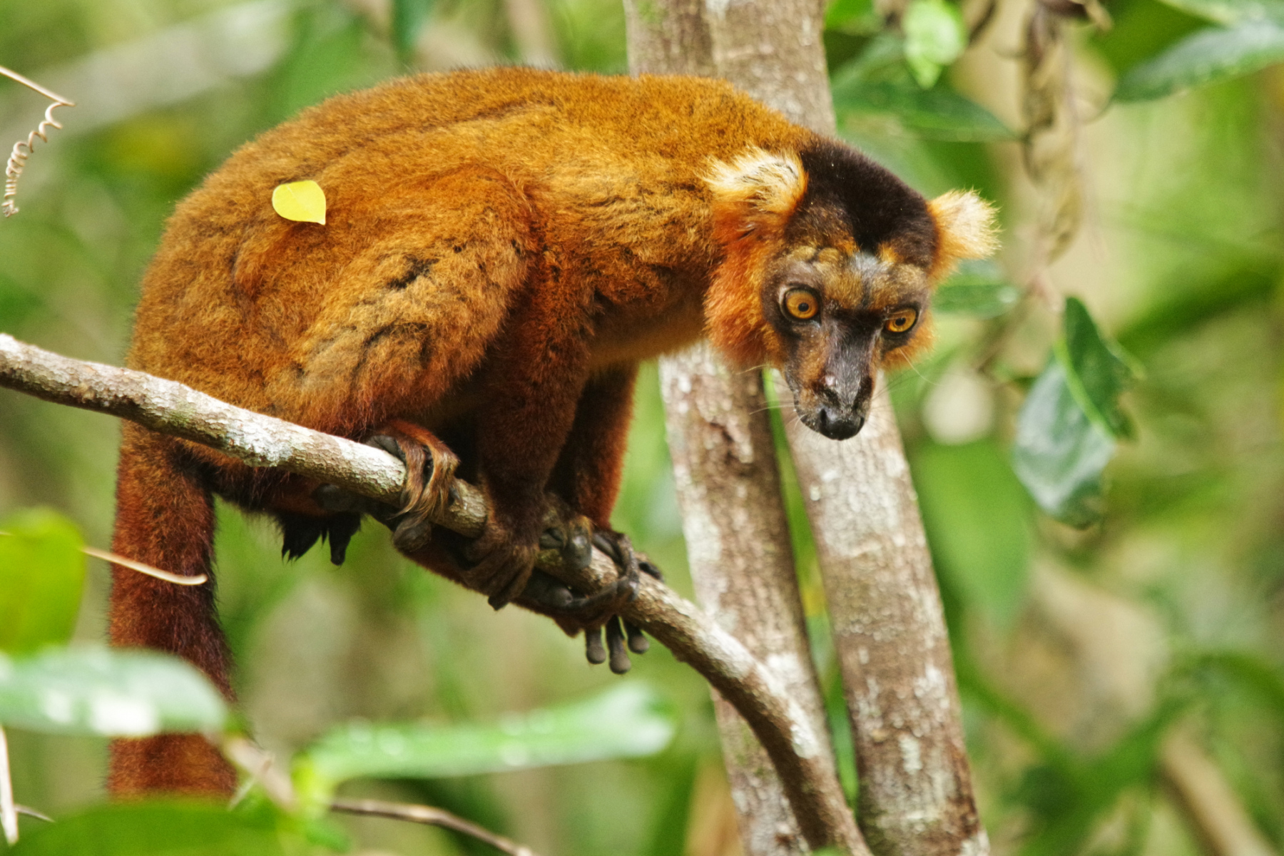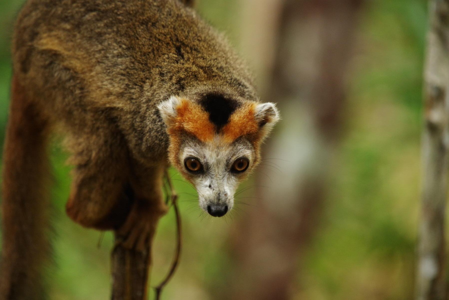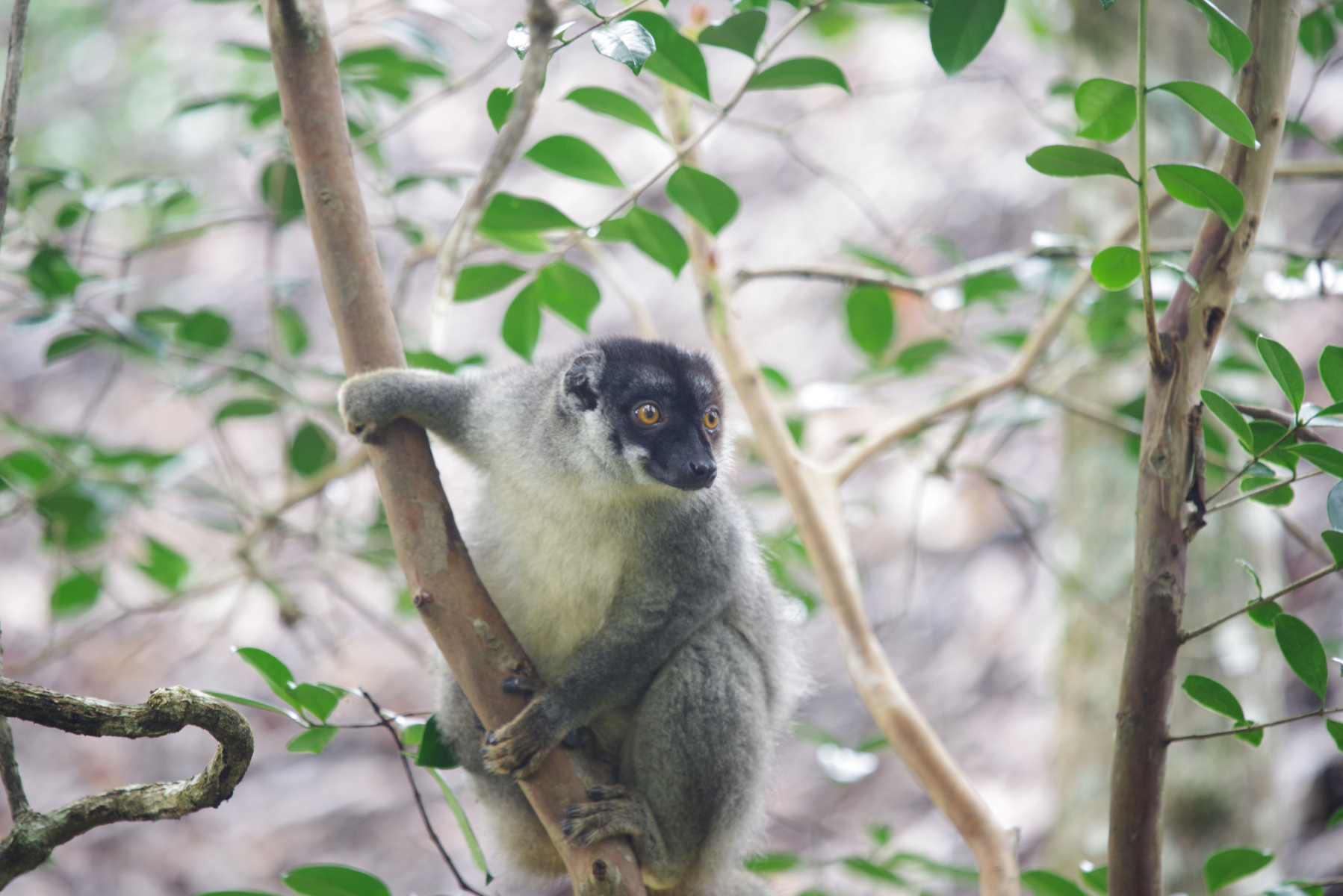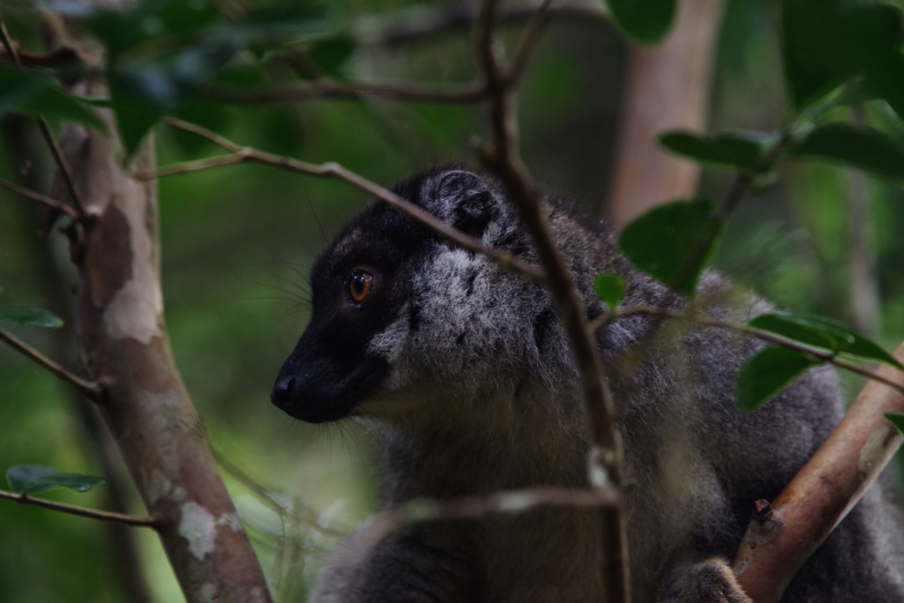 Schwarz-weiße Varis springen durchs Geäst um unseren Bungalow herum und die Kronenmakis, die Männchen braun, die Weibchen grau, sind samt Jungtieren leicht zu finden.