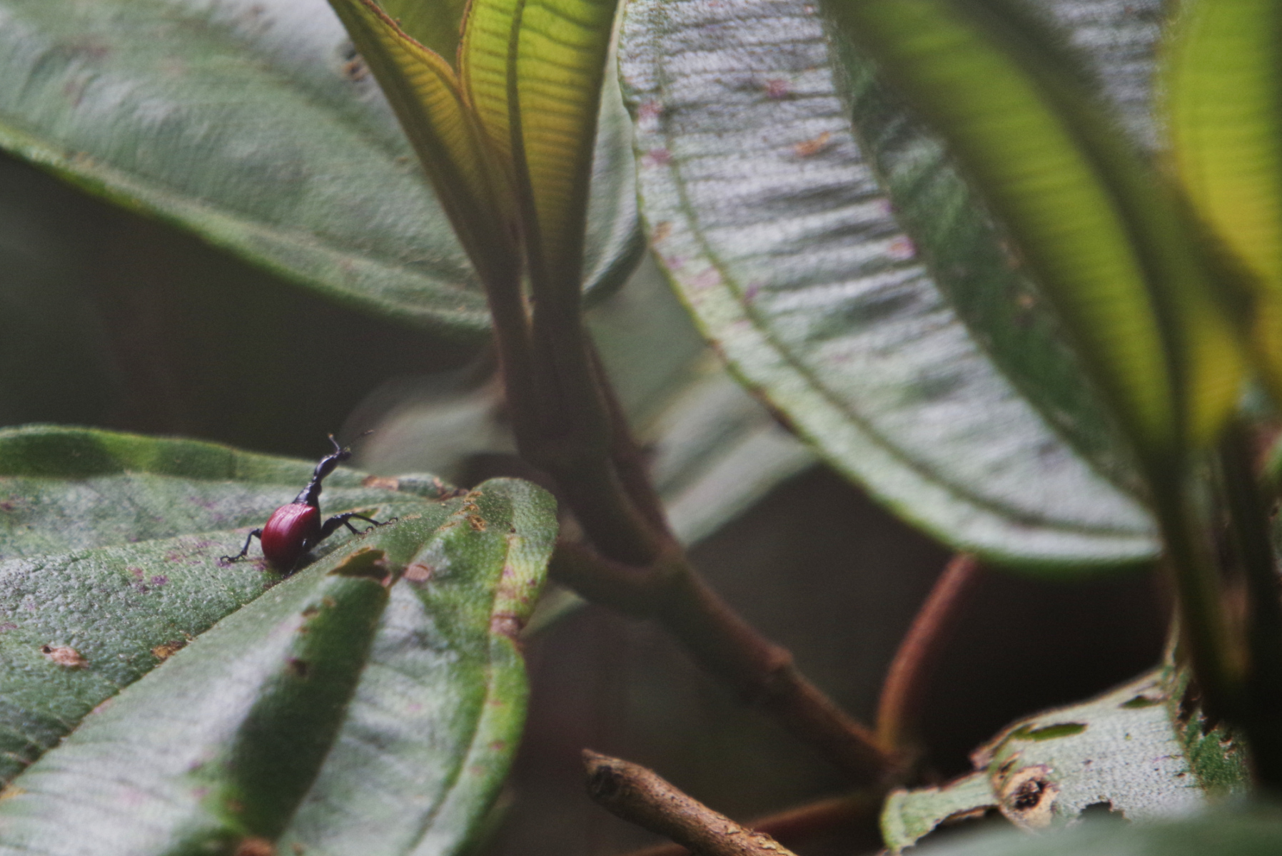 Am Rückweg treffen wir noch auf eine Madagaskar Baumboa, die in der dichten Vegetation neben dem Weg ihren Verdauungsschlaf hält. Unser Guide findet auch den Giraffenkäfer, ebenfalls endemisch in Madagaskar. Im Bach tummeln sich Taumelkäfer, mit etwa drei cm deutlich größer als unsere heimischen Gyrinidae.
