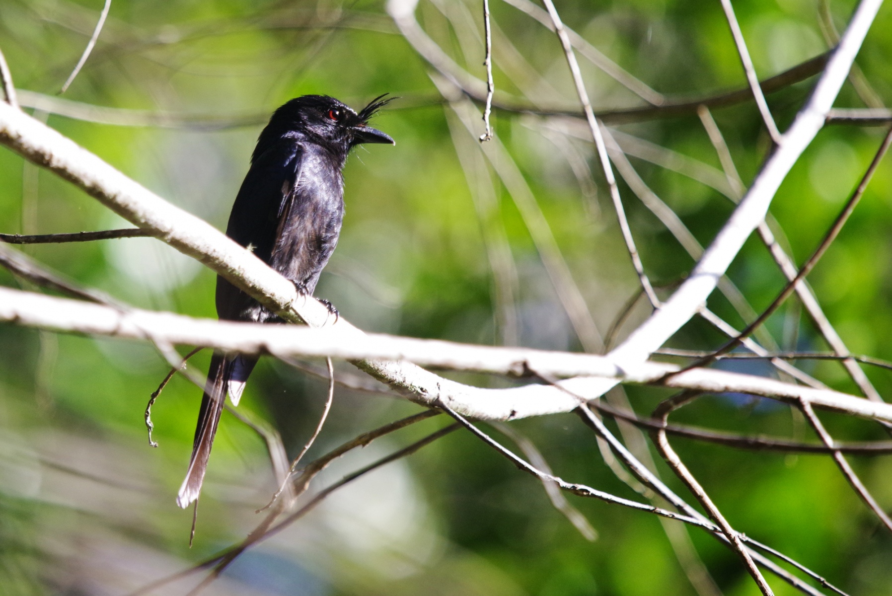 Am Nachmittag trauen wir uns das erste Mal alleine in den Wald. Hänsel und Gretel finden den Bambuslemur, den Rotschwanzvanga, Orchideen (obwohl die Blütezeit erst im Oktober beginnen sollte) und den nur hier auf Madagaskar und den Komoren heimischen crested drongo, erkennbar an seinem schwarzen Schopf – und schließlich auch wieder aus dem Wald heraus.