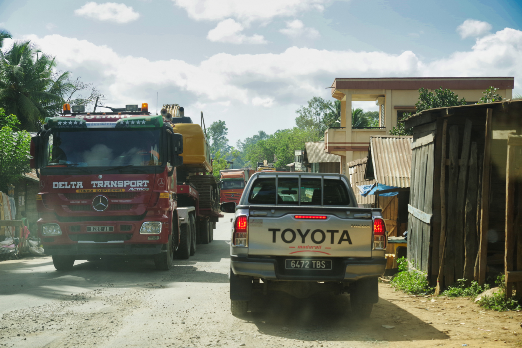 Die nächste Etappe auf der RN2, immerhin der Hauptverbindung von Antananarivo zum wichtigsten Hafen Madagaskars, erweist sich als durchaus anspruchsvoll für Mensch und Material. Schnell fühlen wir uns Mitten in die Doku über die gefährlichsten Straßen der Welt versetzt. Schlaglöcher, teils metertief, und Laster an Laster geht’s in engen Kehren hinunter nach Brickaville. Ab und zu bleibt einer auf der Strecke. Ohne Allrad hat man hier keine Chance. Bald überwiegt die Piste den lückigen Asphalt.
