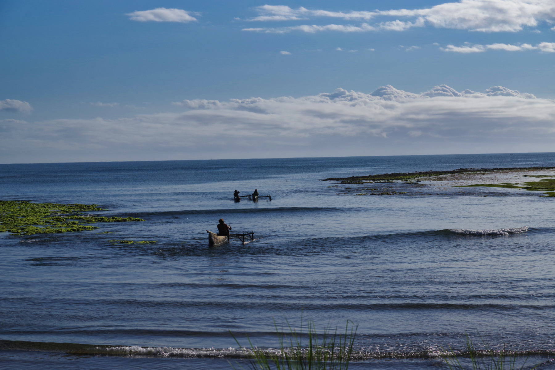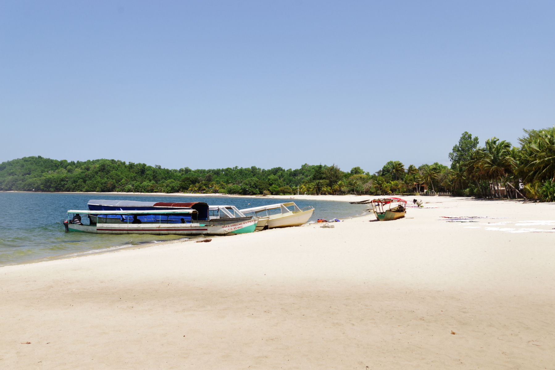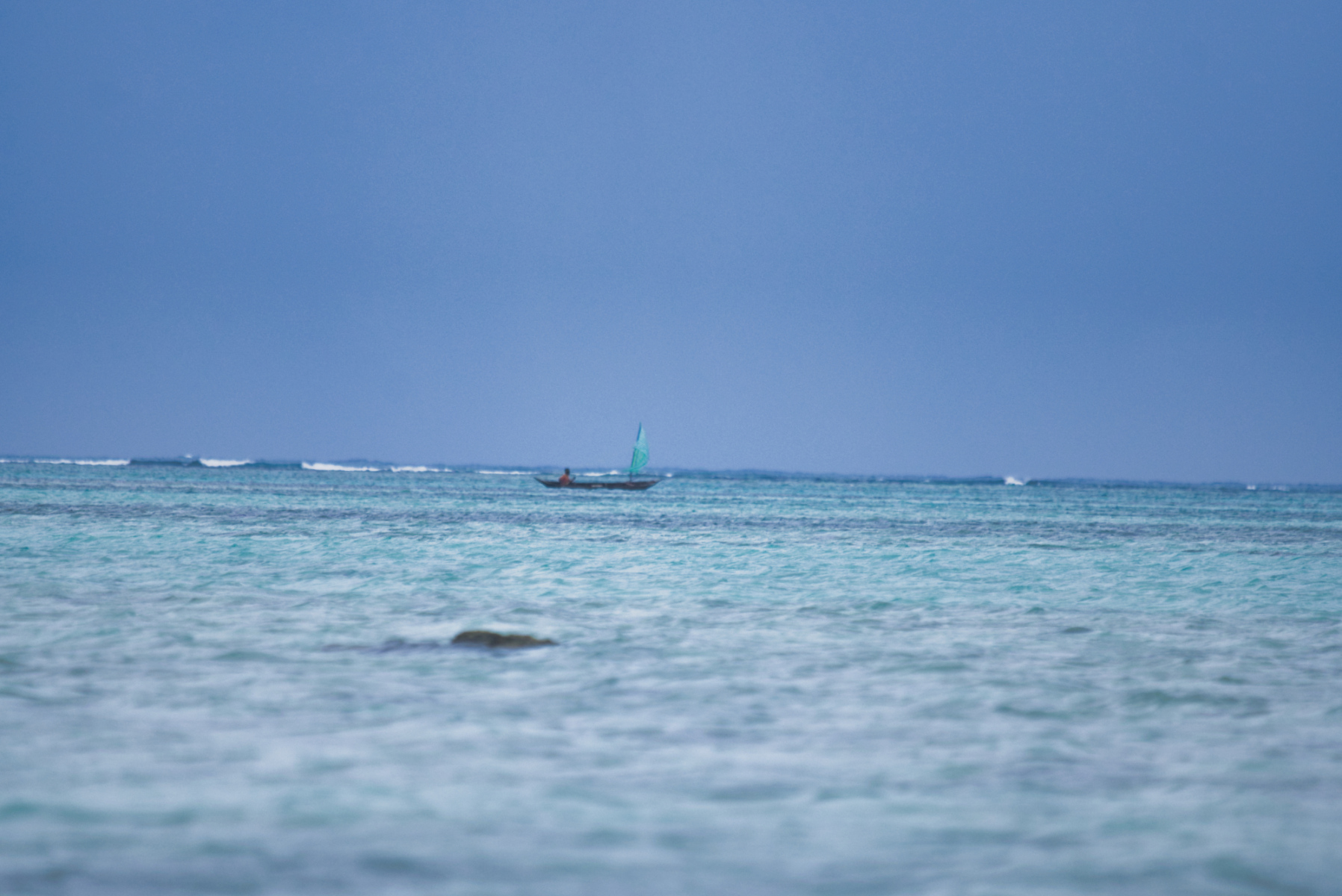 Mit der Flut geht’s los übers seichte Wasser innerhalb des Riffgürtels, die menschenleere Ostküste von St. Marie entlang, vorbei an Traumstränden und verlassenen Hotels, Coronaopfer, die nicht wieder aufgebaut wurden, weil die Touristen lieber alle zusammen auf der Westseite bleiben. Dann eine Lücke im Riff, den Motor auf Vollgas und wir sind durch. Draußen ist der Seegang deutlich stärker, aber schon tauchen die sagenumwobenen und hierzulande heiligen Sandinseln vor uns auf. Die verdanken ihre Entstehung den hier aufeinander treffenden Meeresströmungen, erkennbar an den von beiden Seiten heran brausenden Wellen. Derzeit sind es drei, aber das ändert sich von Zeit zu Zeit.