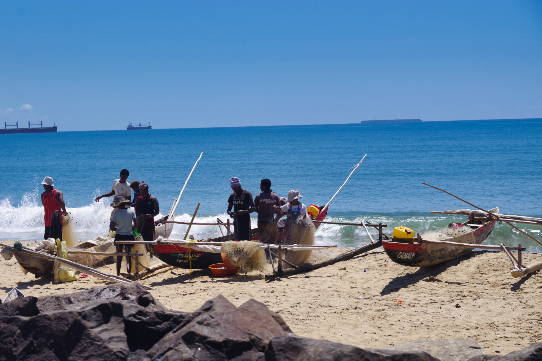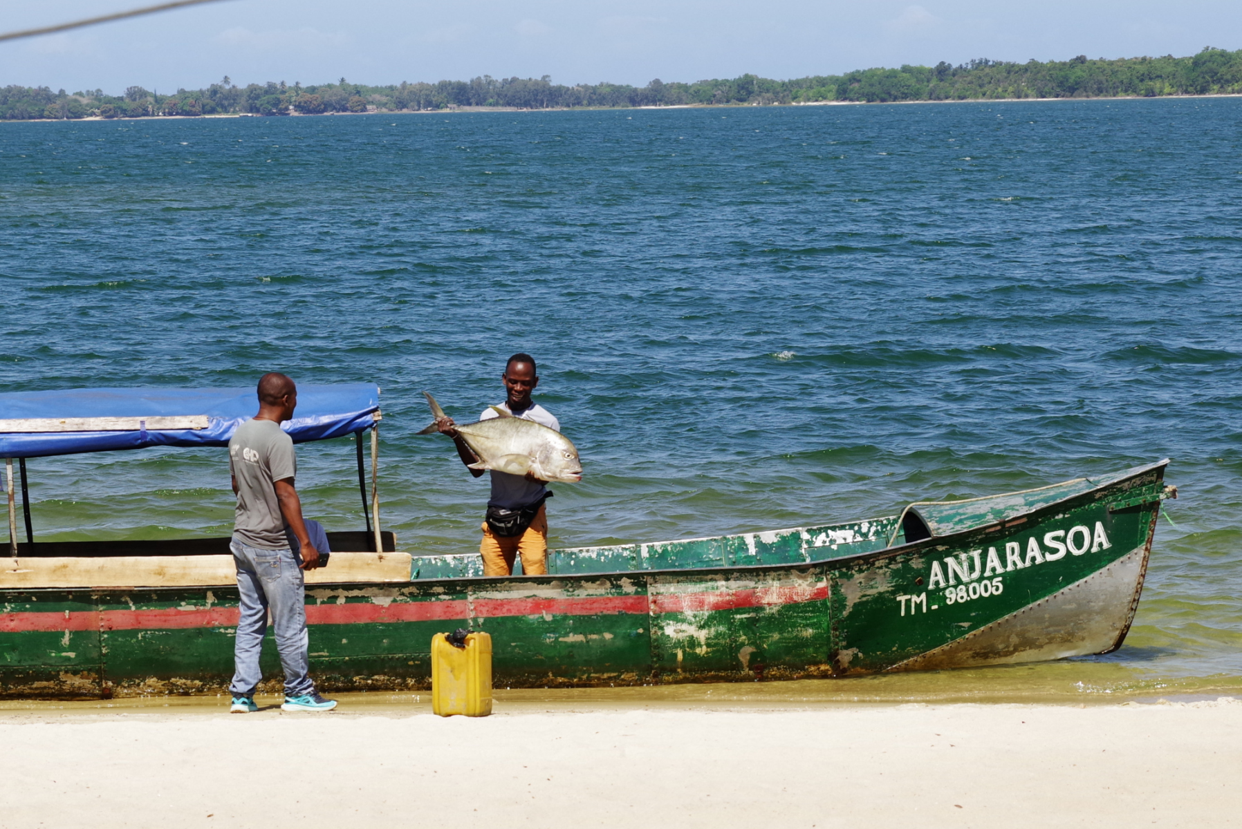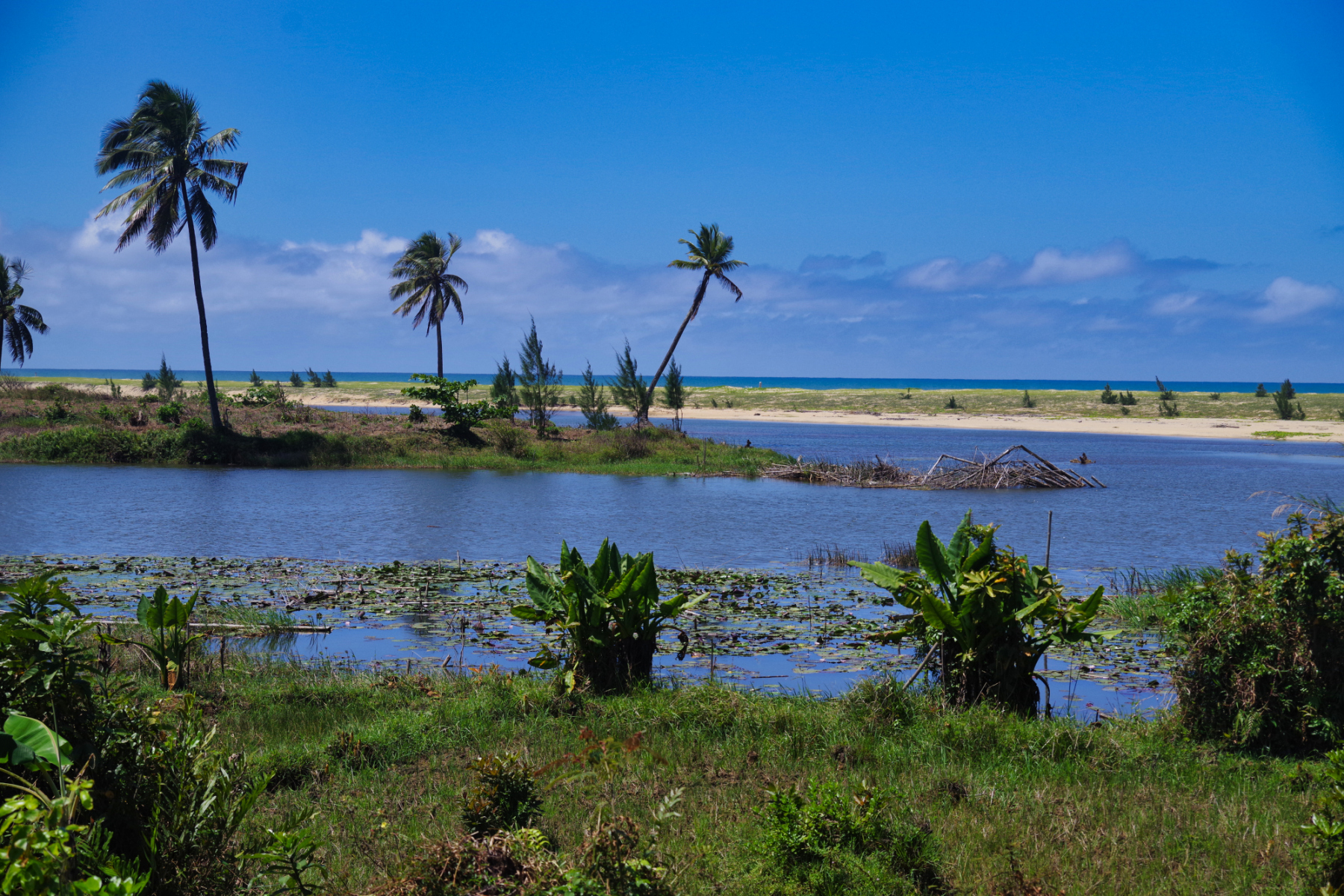 Kurz hinter Brickaville zweigen wir rechts nach Manambato ab. Die Nebenstraße scheint in deutlich besseren Zustand, doch halt, hier stock ich schon: mitten im Nirgendwo ist plötzlich die Piste zu Ende. Bauarbeiten verhindern ein Weiterkommen. Nach einigem Palaver durchqueren wir zu Fuß das Dorf und werden auf der anderen Seite in einen klapprigen Toyotabus verfrachtet. Der kriegt zwar die Heckklappe nicht auf und die Tür kaum zu – aber setzt uns schließlich im Hinterhof eines Restaurants ab. Wir fürchten schon das Schlimmste, da öffnet sich das Tor – und dahinter: weißer Sand, Wind und Wellen. Wir stehen am Kanal de Pangalanes!