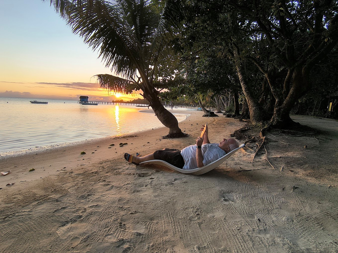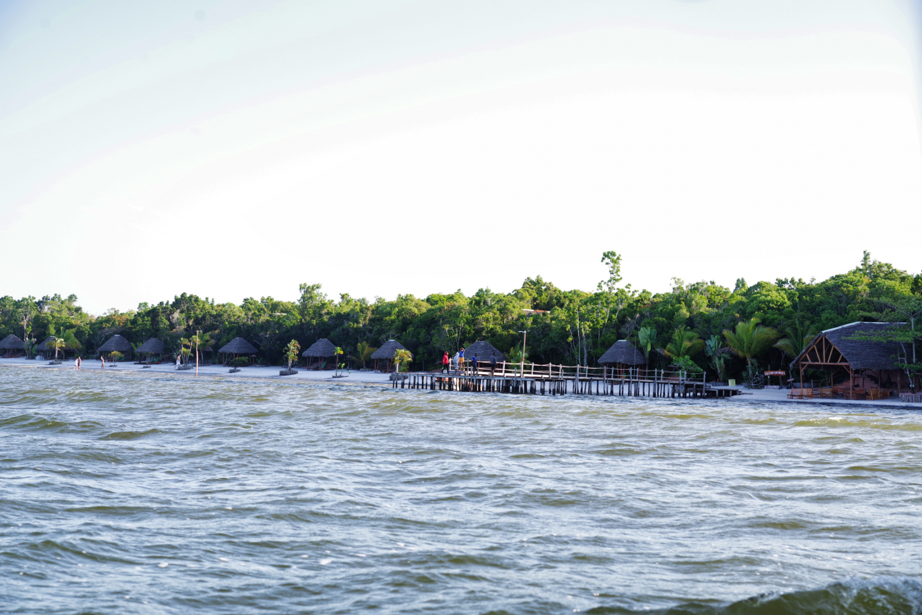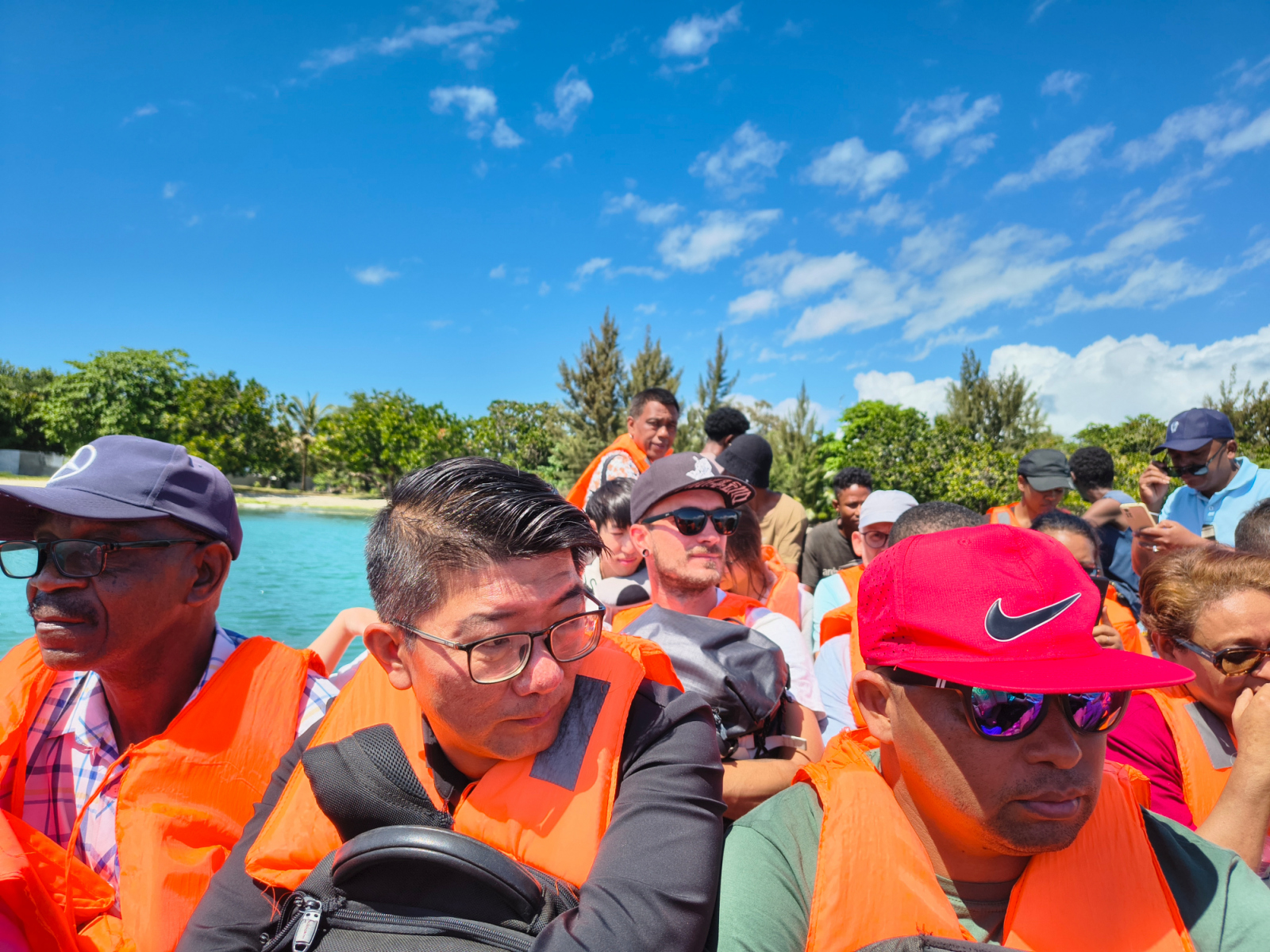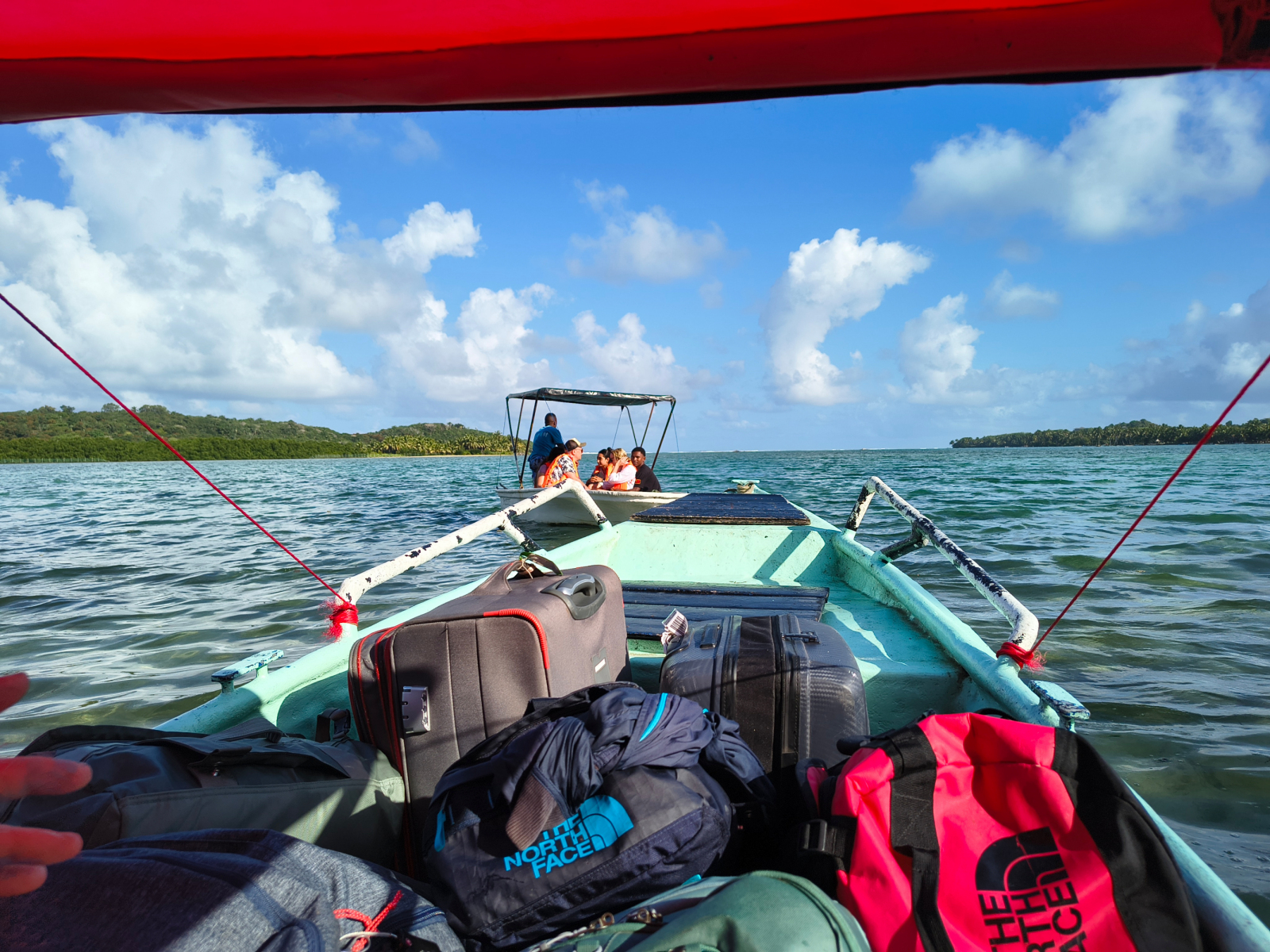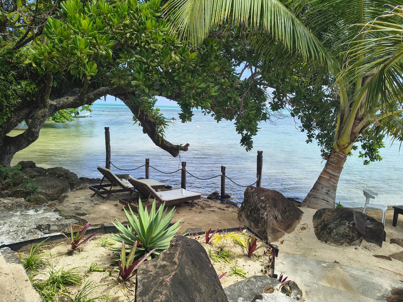 Palmengesäumte Traumstrände an Steuerbord, das Riff an Backbord, erreichen wir unsere Bleibe auf der Ile aux Nattes. Alles aussteigen – durch das seichte Wasser waten wir zur Aurora Lodge.