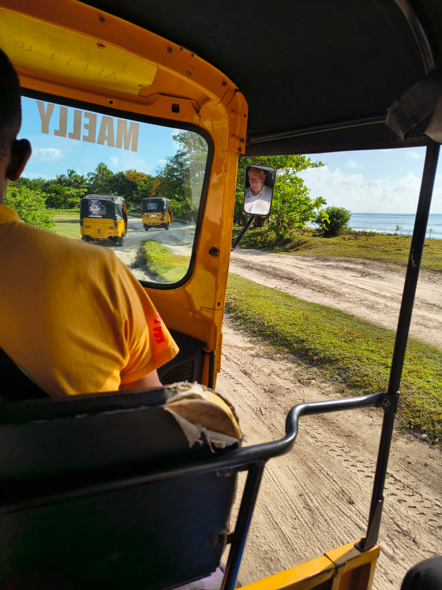 Wieder per TukTuk geht’s weiter bis ans Südende der Insel St. Marie. Noch bewundern wir die sicherlich beste Straße Madagaskars, Temposchwellen und Zebrastreifen inklusive, liefern sich die TukTuks bereits ein wildes Rennen am Flughafen vorbei. Die Straße hier ginge bei uns wohl eher als BMX-Bahn durch. Immerhin die Landebahn ist asphaltiert.