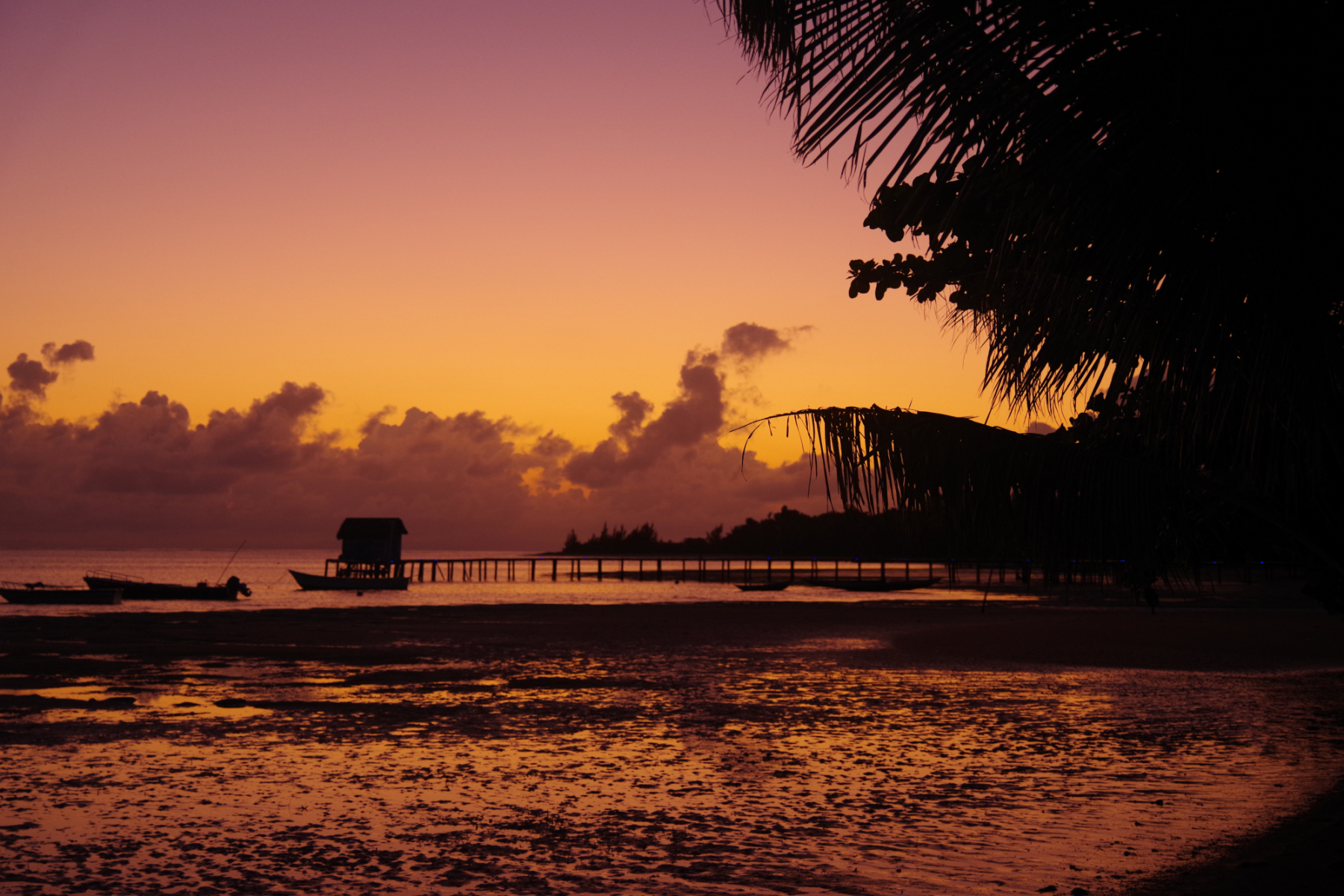 Wieder um 06:30 Tagwache, wir vermissen unseren Vari-Wecker. Nach dem Security check, ob wir eh nichts haben mitgehen lassen aus dem luxary bungalow, bringt uns ein TukTuk zum „Fähranleger“. Das heißt, die Fähre liegt draußen vor Anker, am Strand eine Barkasse, immerhin motorisiert. Es ist 08:00, starten soll das Vergnügen um 11:00. Wir geben unser Gepäck ab, unser Ticket interessiert hier niemanden. Dann heißt es warten. Wie auf einer Ameisenstraße ziehen die Träger mit den Koffern und Taschen zum Strand, der Berg im Boot wächst und wächst, ab und zu sorgt die Brandung für eine statische günstigere Verteilung.