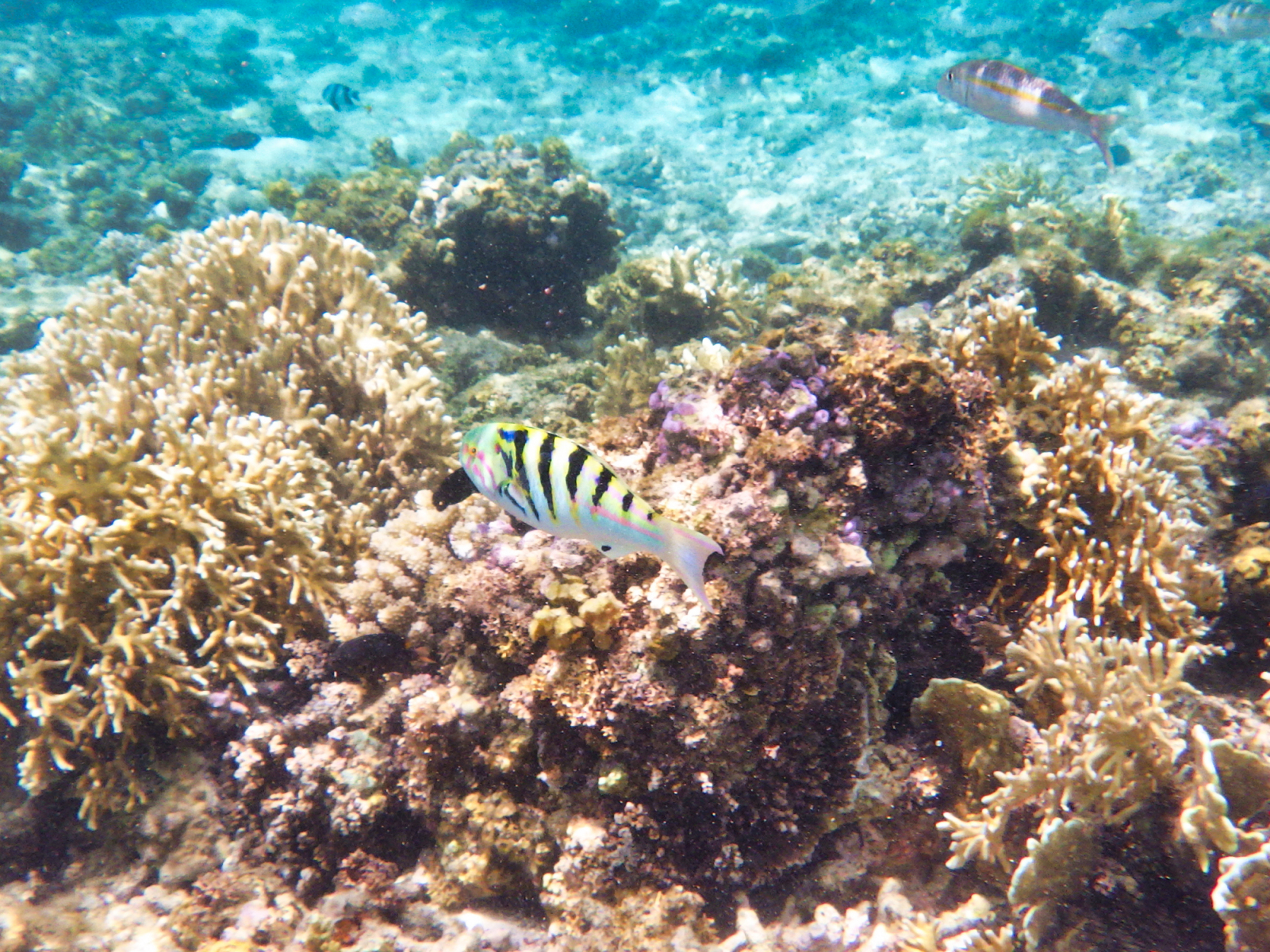 „Fische große, Fische kleine, scharenweise und alleine, ach was gibt es doch für Fische, kunterbunte, zauberische“. Beim Schnorcheln am Riff werden Erinnerungen an Taniwani geweckt.