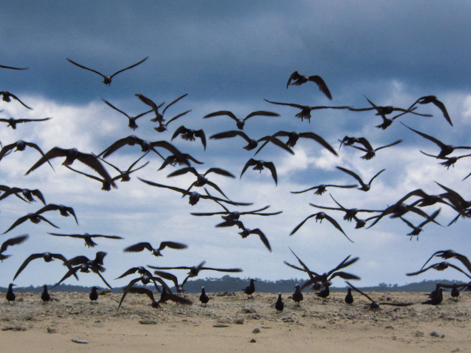 Wir verlassen bei zunehmendem Wind diesen verzauberten Ort. Die Sturmvögel fliegen auf. Diesmal ist die Durchfahrt etwas ruppiger als bei der Hinfahrt. Schließlich holt uns auch der lang erwartete tropische Regen ein.