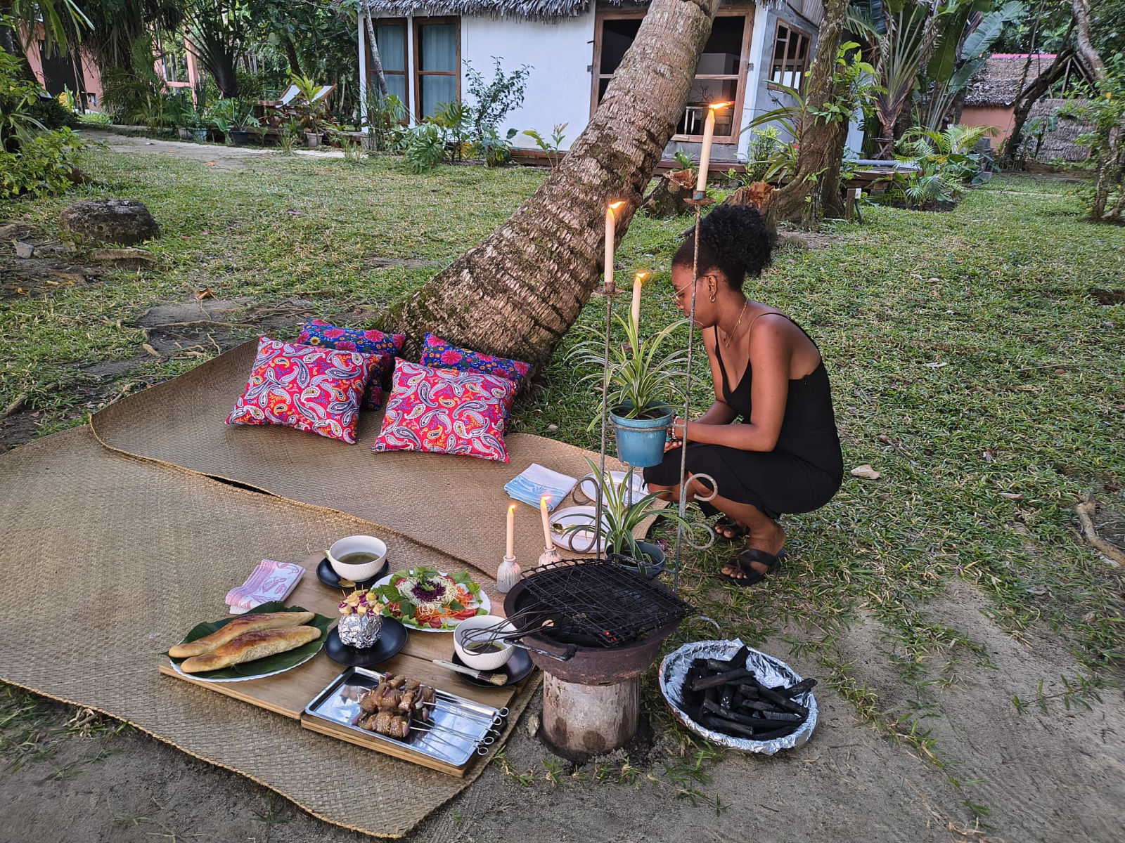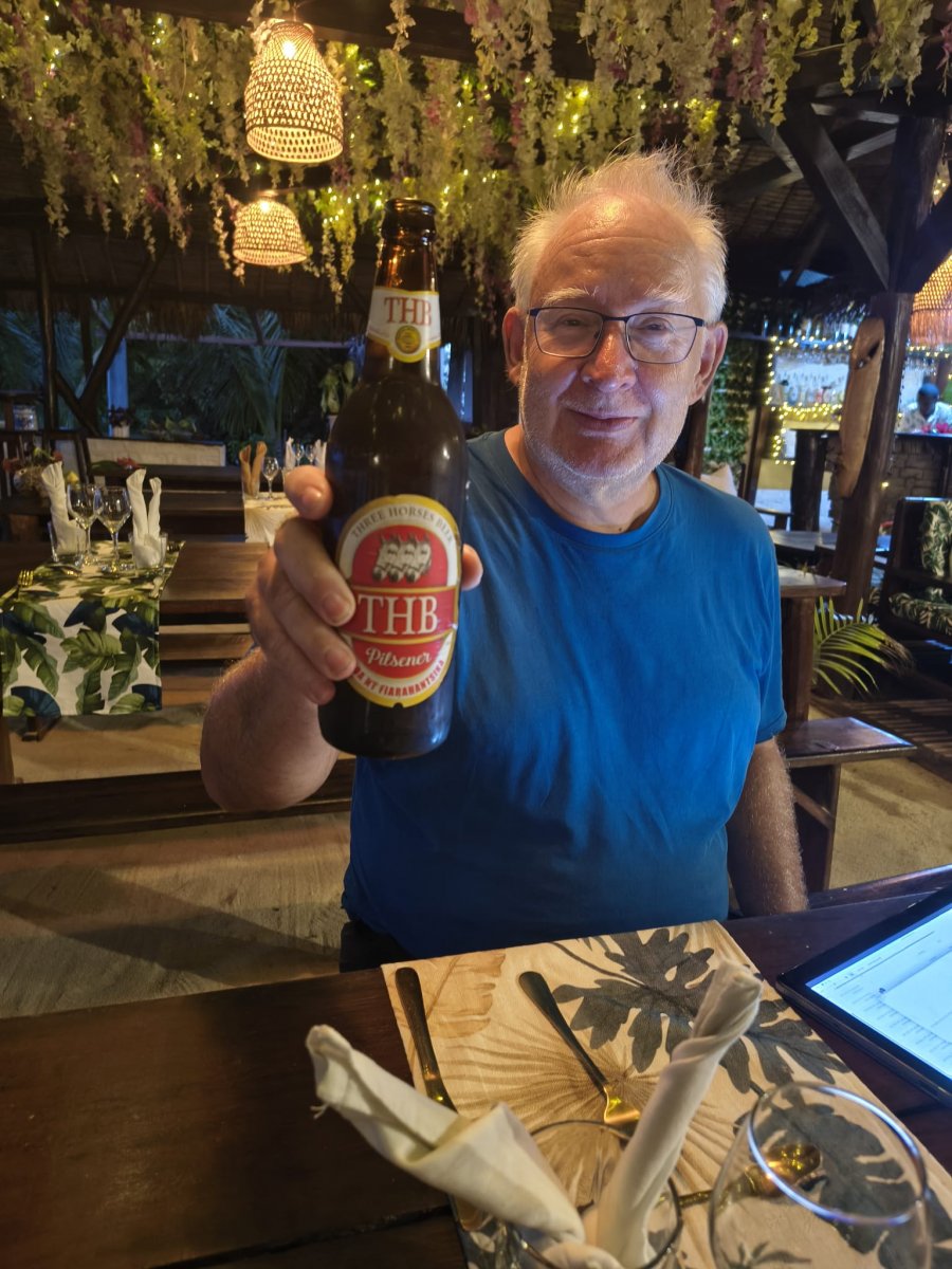 Zum Glück hat eine tatkräftige Schwedin die Aurora lodge aus ihrem Dornröschenschlaf erweckt und wir können uns verwöhnen lassen. Gestern Abend haben wir ein romantisches Dinner zu zweit, nach madegassischer Tradition mit der Fatapera zubereitet,  im Garten der lodge genossen, heute gibt’s frischen Fisch und dazu Madagaskars berühmtes Three horses beer!