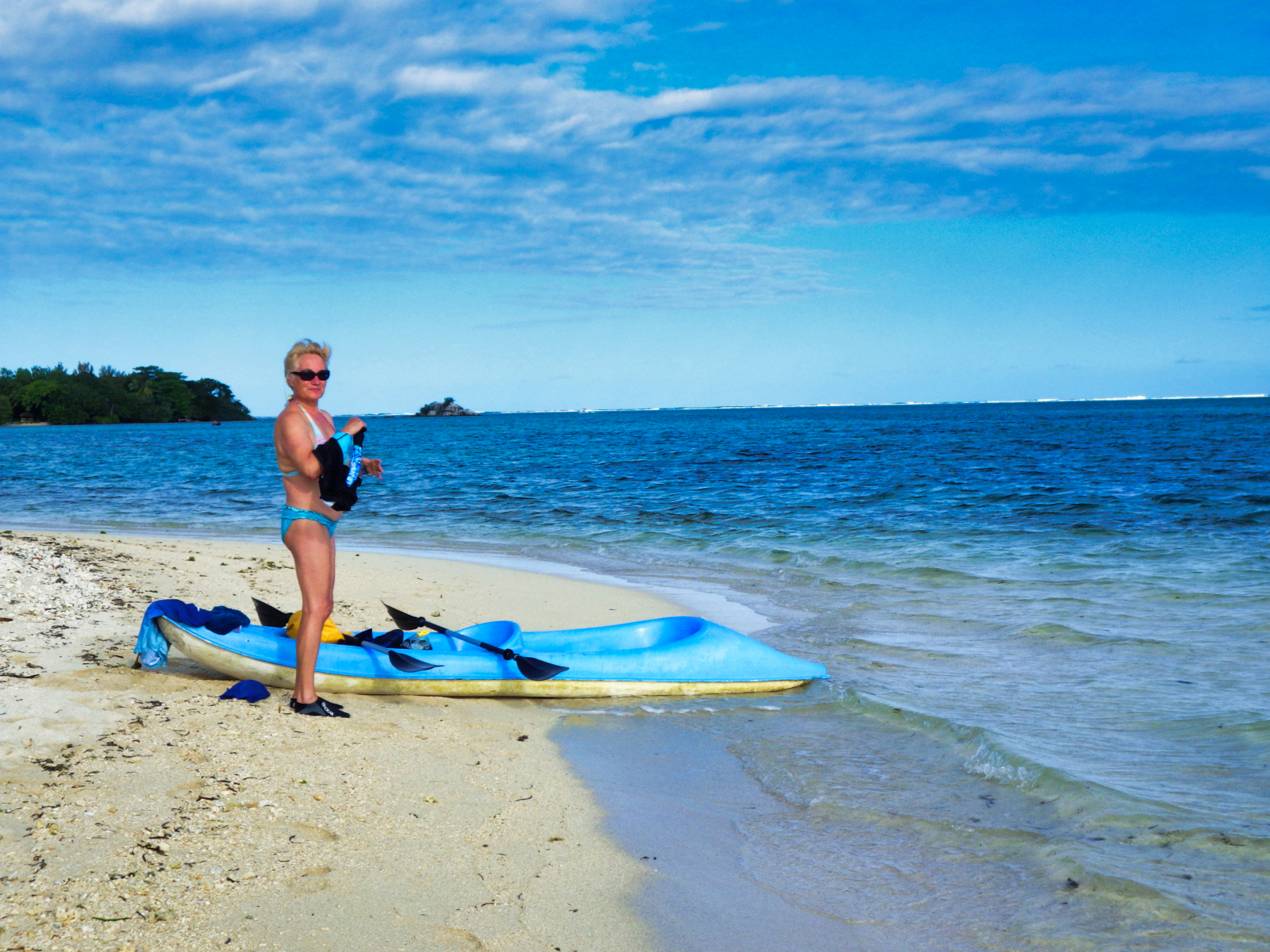 Heute gibt’s wieder perfektes Wetter, auch zum Kajak fahren und gemütlich am Strand Liegen.